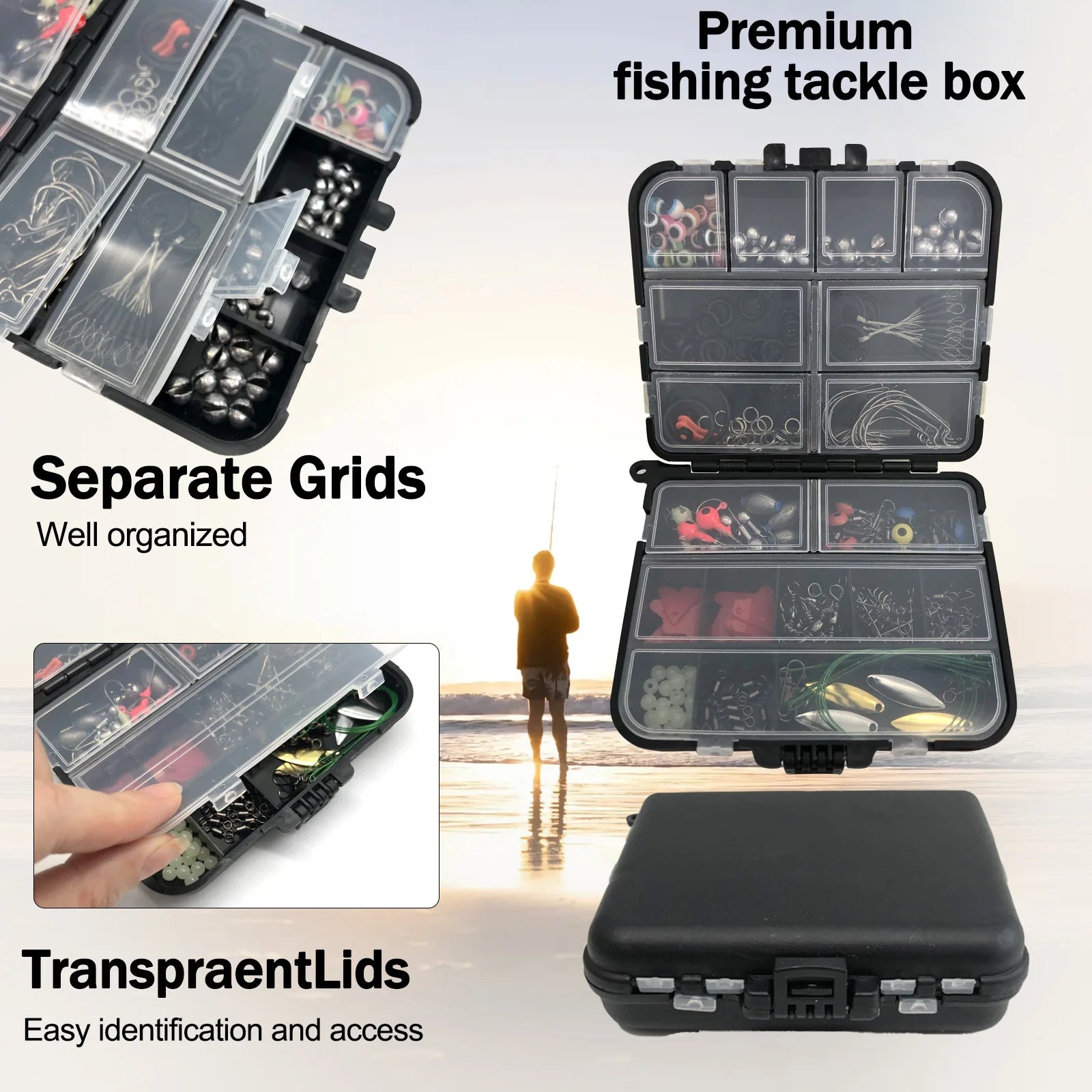 - 📦 Organized Tackle Box – Comes with a double-layer storage case featuring transparent lids and divided compartments for easy identification and quick access.